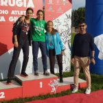 Doppiette nel giavellotto e nei 1500 dove la società arancionera festeggia quattro titoli di campione regionale. Nei lanci Antonio Valenti si impone tra i Cadetti con la misura di 42.15 e Olivia Sbordoni tra le Cadette con 37.75. Mentre nei 1500 la vittoria tra gli Allievi va a Diego D’Inzillo Carranza in 4:13.39 e a Giulia Colarieti tra le Allieve con il tempo di 4:43.16.